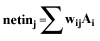 Read this equation as: The net input of a neuron is the sum of (all weights connected as inputs to the neuron * all activation values of the neurons at the end of those inputs)