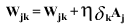 The error in a neuron is used to update all of its input dendrites' weights using the following equation: